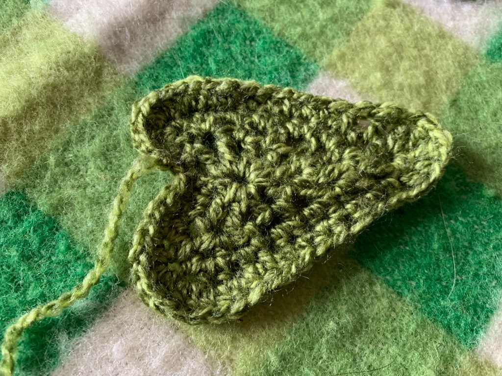 Sunflower leaves are essentially pointy, heart-shaped circles, worked in the round.