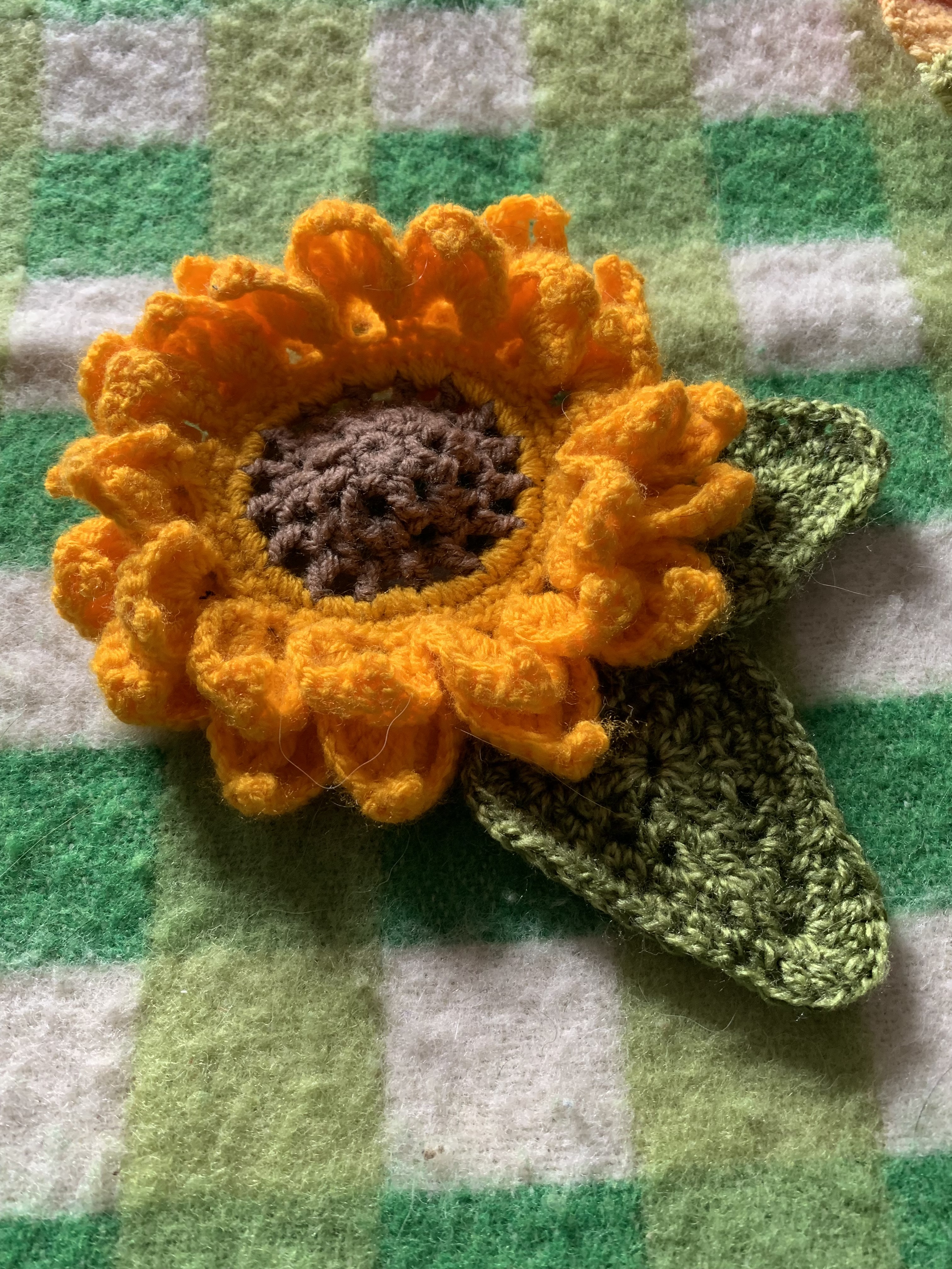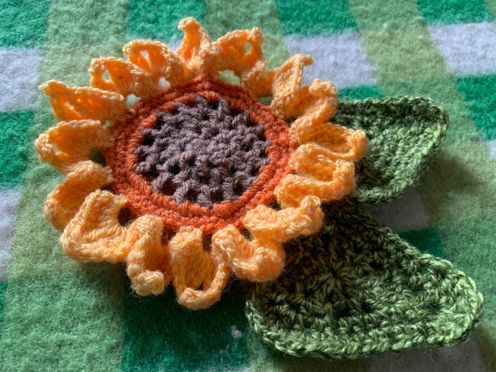 For a sunflower with a single round of petals, break the yarn and sew in the ends.